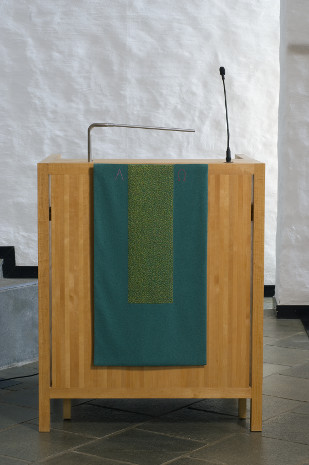 Korson kirkon saarnastuoli, vihreƤ kirjaliina 2002